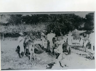 Hacienda Buenavista en la Zona Industrial de Mamonal, campesinos preparando a las bestias para llevar las Mercancías.