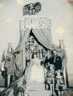 Coronación de Cecilia de la Espriella Pombo, acompañada de Enrique Grau y dos pajes.
