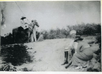 Recreación en la Hacienda Buenavista, mujer montada en burro.