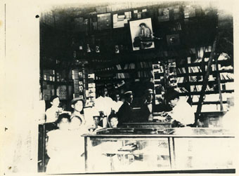 Interior del almacén de J. V. Mogollón & Cía., de don Pepe Mogollón, en donde se vendían cuadernos, útiles de escritorio, papelería, útiles escolares, equipos de oficina, revistas, libros de manuales para oficios varios, libros de textos, libros por encargo y muchas otras cosas más. Los Almacenes Mogollón cambiaron de local con frecuencia en la medida en que se expandió su oferta de artículos, hasta que construyó su propia sede en la calle del Coliseo. El local de la foto parece corresponder al ubicado en la esquina de la calle Román con Cochera del Gobernador.