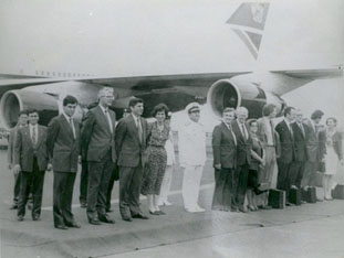 El primer ministro de Gran Bretaña John Major con el presidente Gaviria y Señora Ana Milena esposa del presidente colombiano, el ministro de defensa Rafael Pardo y otros dignitarios durante una visita a Cartagena.
