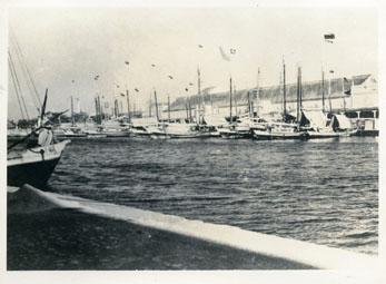 Vista lateral del mercado Getsemaní, se aprecian veleros a la orilla de la bahía de las Ánimas.