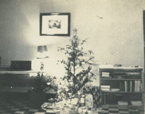 Interior de una casa en la Zona Industrial de Mamonal en tiempo de navidad, también se observa un cuadro de Restrepo Rivera, el Puente de Popayán.