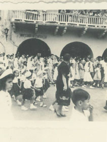 Desfile de alumnos del Colegio Montessori en la Plaza de los Coches, el niño Ricky Espinosa en primera fila.