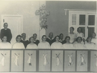 Coro anglicano en la casa del gerente de Andian Paul Ratliff con el Padre Airens.