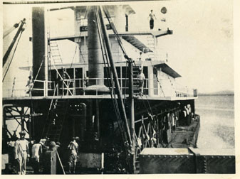 Buque de carga del río para transportar materiales para la construcción del oleoducto de Barrancabermeja.