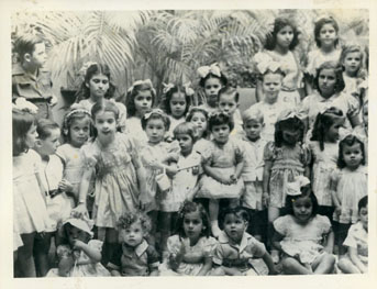Fiesta de cumpleaños de Rosita Castillo Valiente nacida en 1943, es la niñita con los bracitos encima de la falda ubicada en el centro y con lazo en la cabeza. Hija de Alfonso Castillo Gómez y Rosita Valiente Tono. En la foto aparecen José Vicente y Elenita Mogollón Vélez; Evangelina y Amelia Díaz Martínez Aycardi; Chiqui y Rosa Emilia Salom Franco; Norah Covo Torres, Edelmirita Araujo de la Vega y Virginia de la Vega Angulo, entre otros.