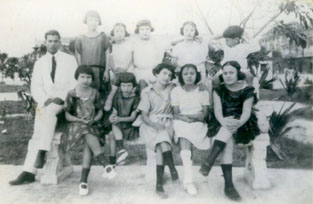 Un grupo de estudiantes con su profesor en el Parque del Centenario /