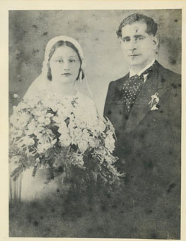 La pareja Hortensia y Teófilo Barbur, el día de su boda. Teófilo llegó a Cartagena en 1923 desde Beirut, la capital libanesa. Encontró una numerosa colonia árabe. Su primer almacén de abarrotes, La Casa Blanca, lo abrió en el Portal de los Dulces, plaza de los Coches.