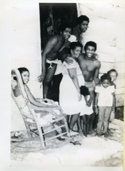 Mariana Amador Herrera, sentada Sara Esther, de pie Ana Herrera, madre de Sara Esther y de Mariana, acompañadas por dos nietas hijas de Mariana.