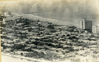 Panorámica aérea del barrio Bocagrande hacia el Hotel Caribe, se aprecia el mar y sus playas.