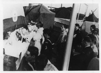 Celebración de una misa abordo de la nave capitán Tono.
