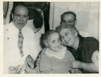 El día del bautizo del Capitán Tono con Vicentico Martínez, Daniel Lemaitre, Doña Lucía Tono Maciá (nieta de Tono) y Josefina Tono de Covo.