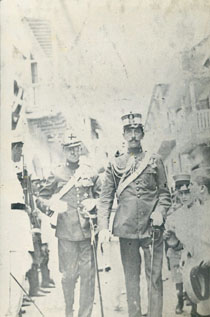 Visita del infante Fernando de Baviera y Borbón, (Madrid 1884-1958), príncipe de Baviera, a su llegada a Cartagena el 29 de abril de 1921 en representación de su cuñado y primo, el rey de España Alfonso XIII. Fue hospedado en la que fuera la sede del Real Consulado de Comercio, en la calle del Sargento Mayor, entonces residencia de Eduardo Martínez Aycardi, cónsul de España en Cartagena.