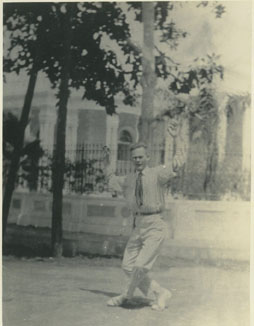 Hombre bailando en la calle, frente a la casa “Villa Susana” en el barrio de Manga.