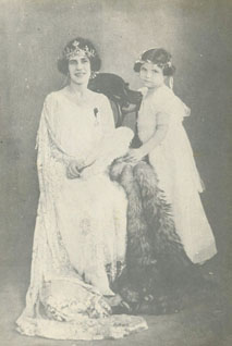 Maruja de León del Castillo, reina de los estudiantes y acompañada de su pajecita.