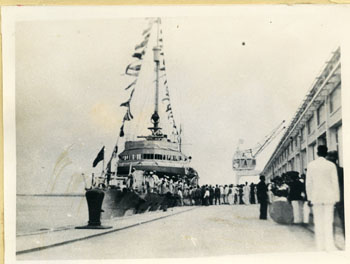 Un barco en el muelle marítimo de Manga, se observa cuando los tripulantes descienden de la nave.
