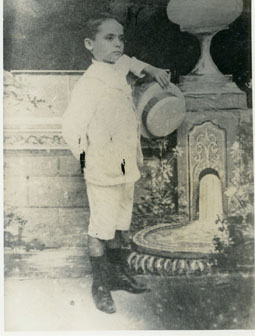 Roberto Lequerica Gómez posando al lado de fuente.