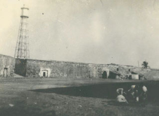El faro en Baluarte de Santo Domingo, visto desde atrás.