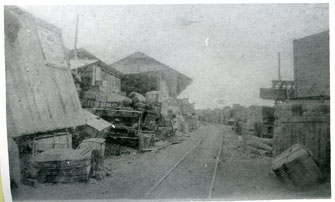 Congestión de carga, se observan las cabañas al lado de las vías del ferrocarril.