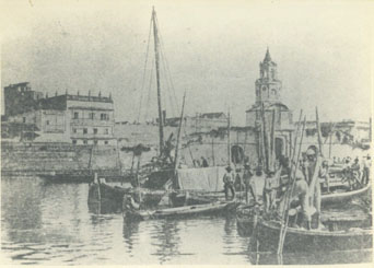 Barquetonas en la bahía de las Ánimas, importantes en el comercio de cabotaje entre Cartagena y la región del Sinú y el Atrato. Desde allá se traían víveres y maderas para el mercado de Getsemaní.