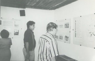Guido y Antonio Cozzarelli, observando la exposición "Evolución de las Plazas a Parque" de la Fototeca en el Cavi de la Sociedad de Mejoras Públicas.