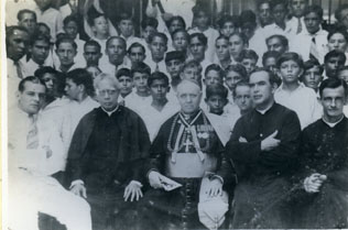 Brioschi fue el primer Arzobispo que tuvo Cartagena. En la foto vemos en primer plano, de izquierda a derecha, a Roberto Vélez Echeverri, el padre Manuel Gómez, rector de los Salesianos, Monseñor Brioschi, el padre Camilo Villegas Ángel, y el padre de la comunidad Eudista, de apellido Guzmán.
