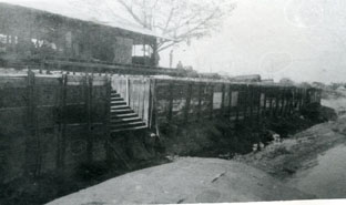 Vista general de Calamar, en primer plano la descarga de mercancías de los buques de carga hacía las bodegas anglo-Colombia por parte de los obreros.