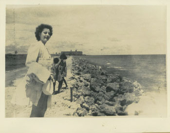 Dorothy Johnson, en playas de Bocagrande con el Hotel Caribe al fondo.