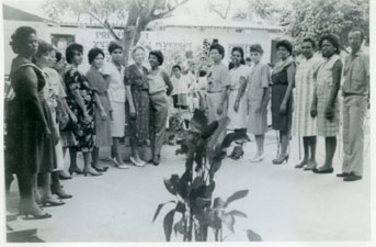 Celebración de los 15 años de la Escuela 11 de Noviembre. Aquí está la donante con sus colegas docentes de dicha escuela.