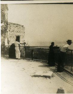 Mirador de la Popa el viejo monasterio, ubicado en el Cerro, se observa la visita de un sacerdote y dos personas.