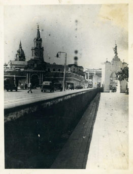 Torre del Reloj, tomada desde el murito Parque Centenario. Es el símbolo representativo y la puerta de entrada a la ciudad de Cartagena de Indias.