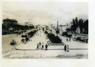 El Camellón de los Mártires, se aprecian las zonas verdes y al fondo la Torre del Reloj, junto al Parque del Centenario.