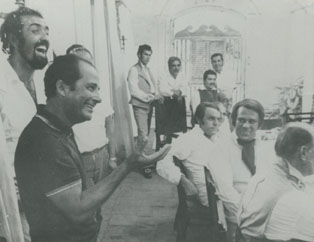 Aparece las locaciones y actores junto con el director Gillo Pontecarvo en un escena de la película Quemada, Salvatore Basile a sus espaldas.