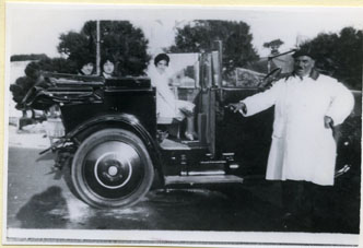 Mercedes A. De Pombo, Matilde y Leneth De Pombo De Standbundos, montadas en un lujoso automóvil de los años 30.