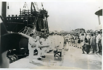 Ceremonia de la presentación frente a las autoridades en el Muelle de las Bodeguitas. En el año 1992, por los oficiales japoneses.