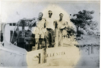 José Vicente Mogollón (Pepino), Oswaldo Merlano, Orlando Trespalacio M. en la lancha “Elenita”.