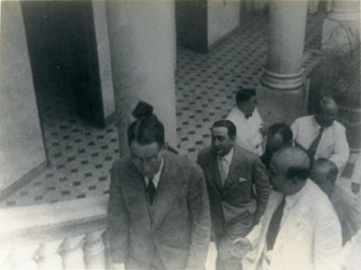 Presidente Eduardo Santos Montejo y Vicente Martínez Martelo en la celebración de las bodas de oro del Club Cartagena de Getsemaní.