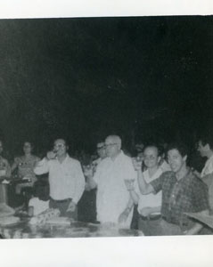 Colegio Eucarístico de Torices, brindis por motivo del cumpleaños del párroco que aparece acompañado de los sacerdotes Hernán Vallejo, Rafael Amstrian y Marcos Sucerquias.