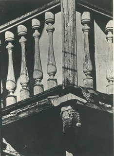 Detalle del estilo del balcón colonial de esquina, centro histórico.