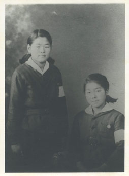 Trabajadoras imparejas en una fabrica de municiones la banda blanca las identifican.